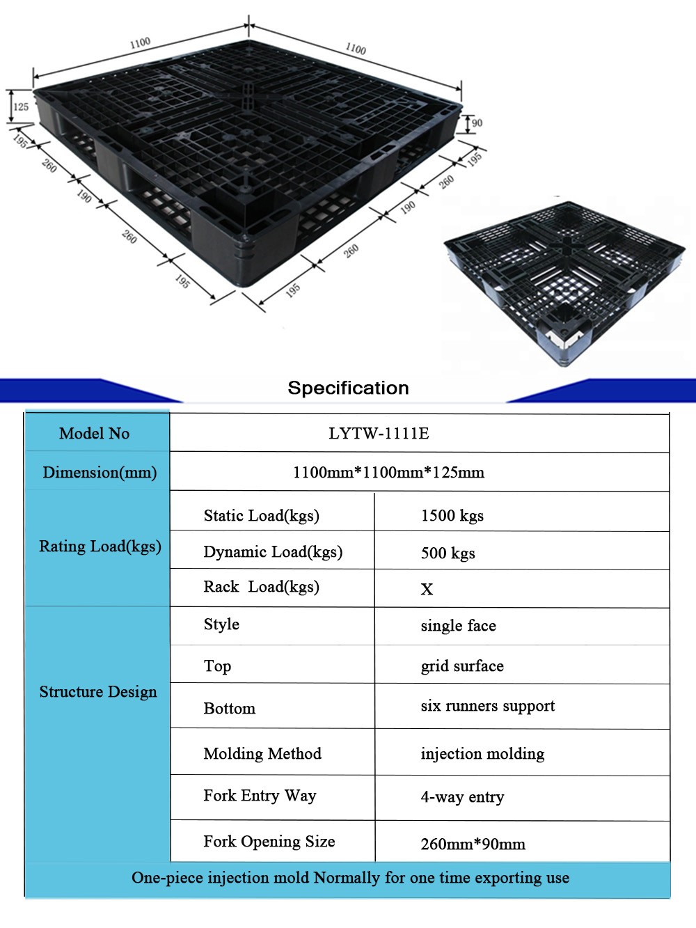 Dimension(mm):1100mm*1100mm*125mm