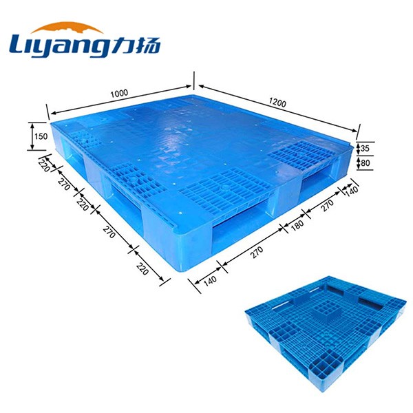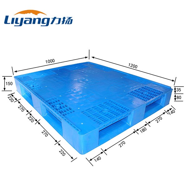 Out Size 1200mm×1000mm×140mm Material HDPE Weight 19.5 KG Color Customized Type Euro Pallet Rating Load Static Load 6000 KG Dynamic Load 1200 KG Rack Load 600 KG Operating Temperature (-30~+70)℃ Logo LiYang Printing Craft Molding Silk-screen Printing Steel Reinforcement No Molding Method One Piece Injection Mold Fork Entry Way 4-way Entry Fork Opening Size 270x80mm FCL 350 Pieces/ 40 HC -