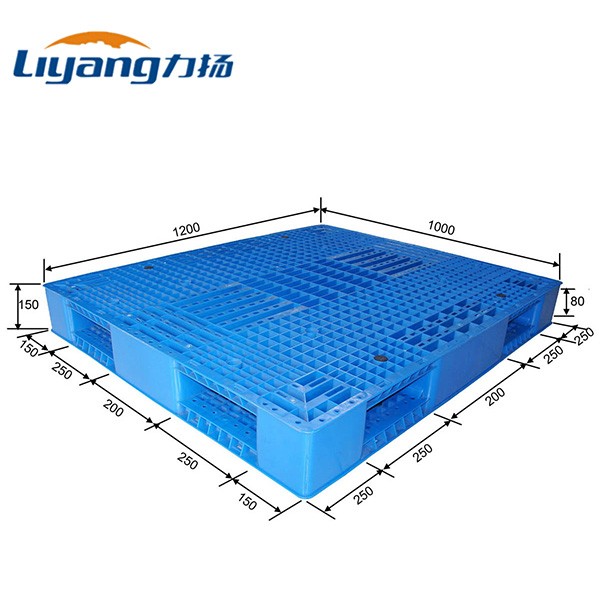 Out Size 1200*1000*150mm Material HDPE Weight 23.6 KGS Color Blue、 Green、 Customized Type Euro Pallet Certificate CE/SGS/ISO9001 Feature Eco-friendly Pallet Rating Load Static Load 5000 KG Dynamic Load 1500 KG Rack Load 600 KG Operating Temperature (-30~+70)℃ Logo LiYang Structure Design Top Full Grid Bottom Full Grid Molding Method One piece injection mold Fork Entry Way 4-way Entry Fork Opening Size 255x80mm FCL 370 Pieces/ 40 HC -