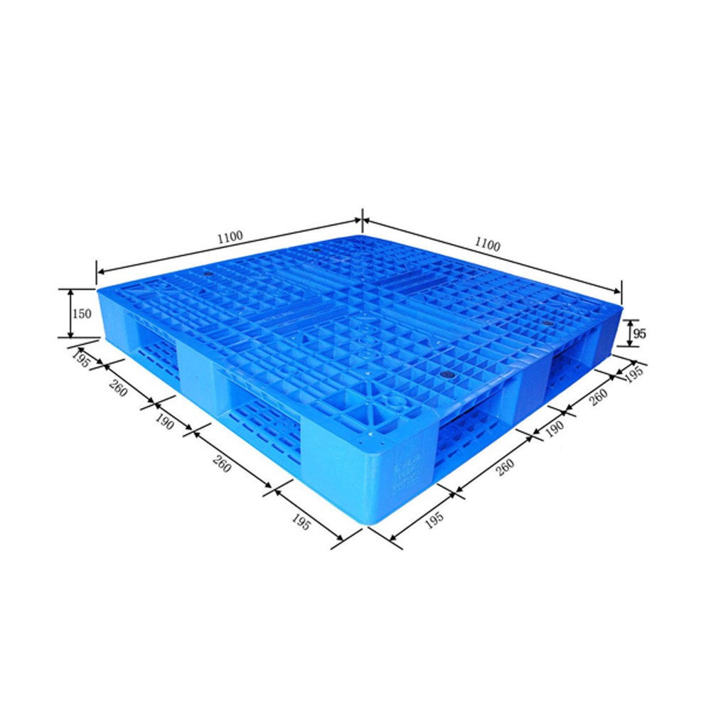 Out Size 1100mm×1100mm×150mm Material HDPE Weight 15KG Color Customized Rating Load Static Load 4000 KG Dynamic Load 1000 KG Rack Load 400 KG Operating Temperature (+50~-30)℃ Logo Customized Printing Craft Molding Silk-screen Printing Structure Design Top Grid Surface Bottom Grid Surface Molding Method Injection Molding Fork Entry Way 4-way Entry Fork Opening Size 260x95mm FCL 360Pieces/ 40 HC -