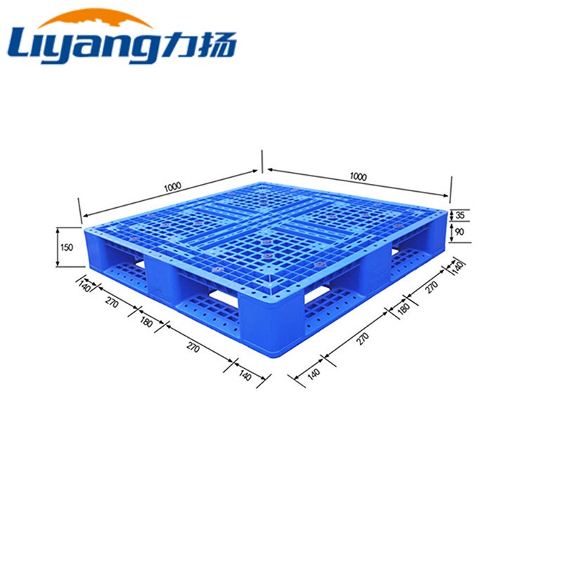 Out Size 1000mm×1000mm×150mm Material HDPE Weight 12KG Color Customized Rating Load Static Load 4000 KG Dynamic Load 1000 KG Rack Load 300 KG Operating Temperature (+50~-30)℃ Logo Customized Printing Craft Molding Silk-screen Printing Structure Design Top Grid Surface Bottom Grid Surface Molding Method Injection Molding Fork Entry Way 4-way Entry Fork Opening Size 270x90mm FCL 425Pieces/ 40 HC -