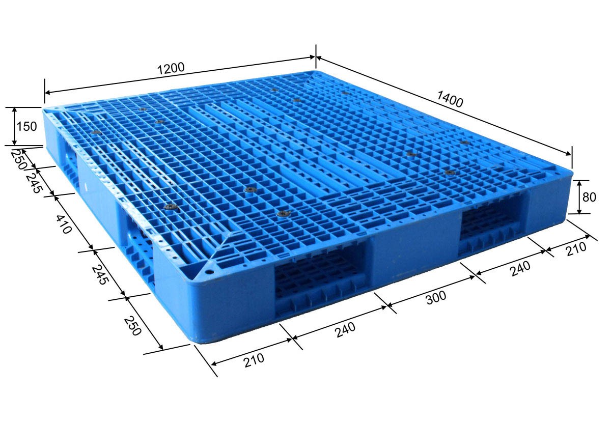 Out Size 1200mm×1200mm×150mm Material HDPE Weight 28.5 KG Color Customized Rating Load Static Load 8000 KG Dynamic Load 1800 KG Rack Load 800 KG Operating Temperature (+50~-30)℃ Logo Customized Printing Craft Molding Silk-screen Printing Structure Design Top Double Faced Gridding Surface Bottom Steel Reinforcement No Molding Method Injection Molding Fork Entry Way 4-way Entry Fork Opening Size 250x80mm FCL 310 Pieces/ 40 HQ -