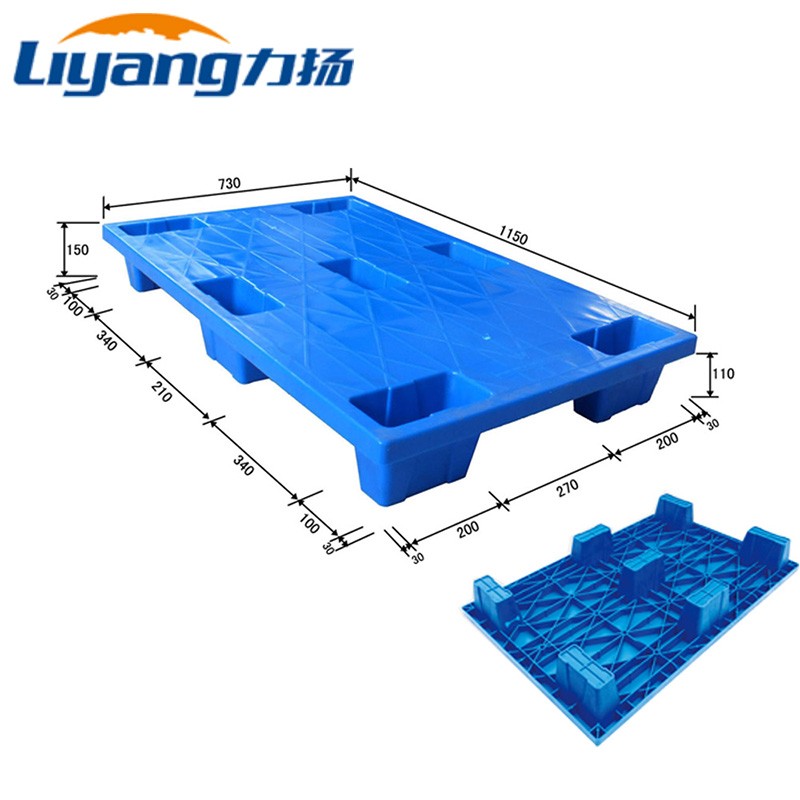 Out Size 1150mm×730mm×150mm Material HDPE Weight 7.4 KG Color Customized Type Euro Pallet Rating Load Static Load 1000 KG Dynamic Load 500 KG Operating Temperature (-30~+70)℃ Logo Li Yang or Customized Printing Craft Molding Silk-screen Printing Structure Design Top Single Flat Bottom Seven Feet Molding Method One Piece Injection Mold FCL 970 Pieces/ 40 HC -