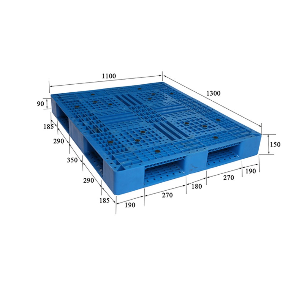 Out Size 1300mm×1100mm×150mm Material HDPE Weight 20.5KG Color Customized Rating Load Static Load 6000 KG Dynamic Load 1500 KG Rack Load 500 KG Operating Temperature (+50~-30)℃ Logo Customized Printing Craft Molding Silk-screen Printing Structure Design Top Grid Surface Bottom Grid Surface Molding Method Injection Molding Fork Entry Way 4-way Entry Fork Opening Size 270x90mm 290x90mm FCL 305Pieces/ 40 HC -
