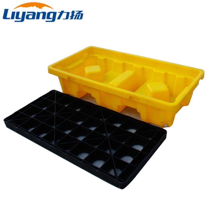 Material Plastic Type Industry pallet Entry Type 4-Way Style Single Faced Place of Origin China Size 1300x1300x150mm and more (custom) Color Yellow deck and black bottom Application oil or chemical industry Usage oil spill comtaiment Static Load 1300kg Dynamic Load 600kg Available forklift type 4 way Raw Material HDPE Item Name oil spill pallet